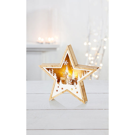 Premier Battery Operated Lit Star Shaped Woodland Scene 23cm