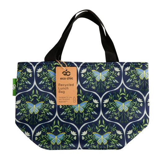 Eco Chic Lightweight Foldable Lunch Bag Navy Butterflies