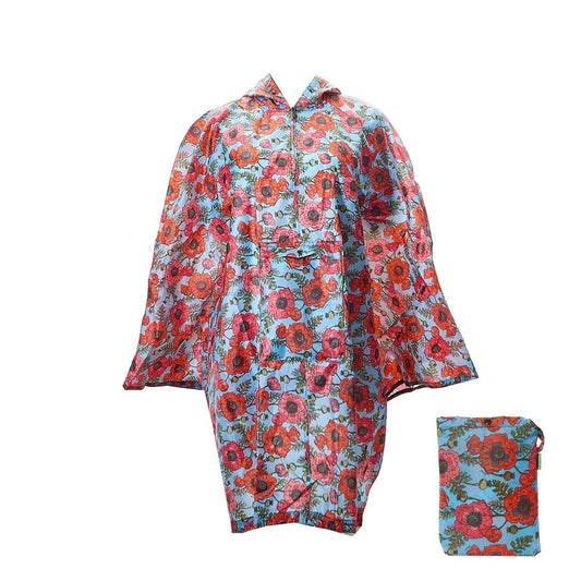 Eco Chic Waterproof Foldable Adult Poncho Poppies Blue