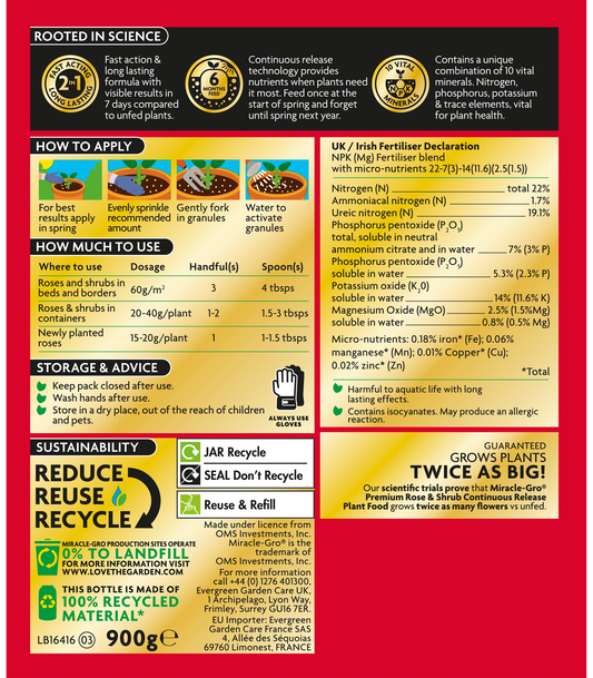 Miracle-Gro Rose & Shrub Continuous Release Plant Food 900g