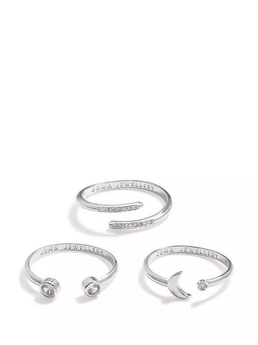Joma Jewellery Stacks Of Style Moon & Cz Silver Set Of 3 Rings