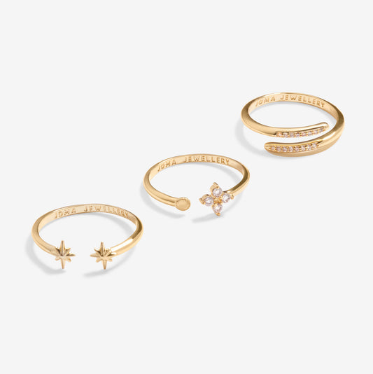 Joma Jewellery Stacks Of Style Gold Star Set Of 3 Rings