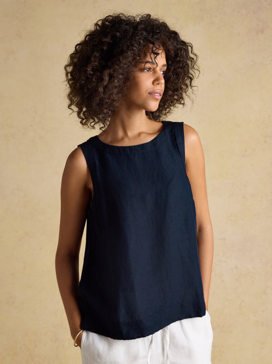 Joules Cove Round Neck Sleeveless Top with Linen