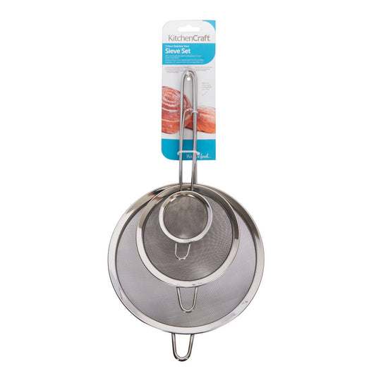 KitchenCraft Set of 3 Stainless Steel Fine Mesh Round Sieves