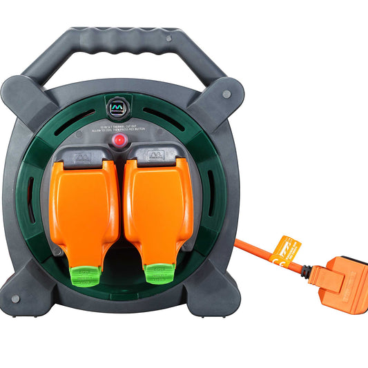 Masterplug 20m Case Reel with 2 Weatherproof Sockets