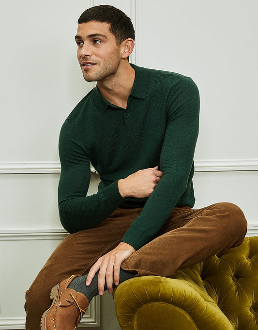 Crew Clothing Merino Long Sleeve Polo Shirt