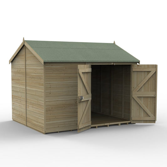 Forest Garden Timberdale 10x8 Reverse Apex Shed with No Windows and Double Door