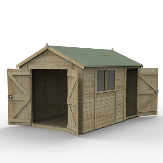Forest Garden Timberdale 12x8 Apex Shed with No Windows, Double Doors - Combo