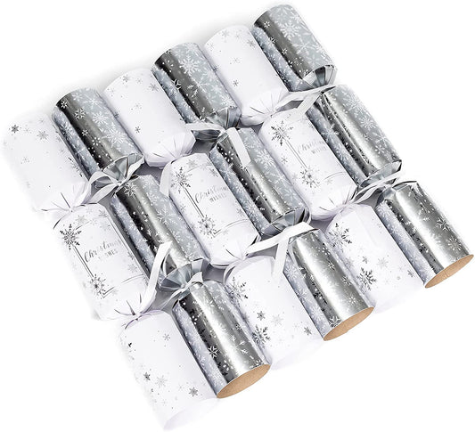 Tom Smith Family Christmas Crackers White & Silver Snowflake 8-Pack