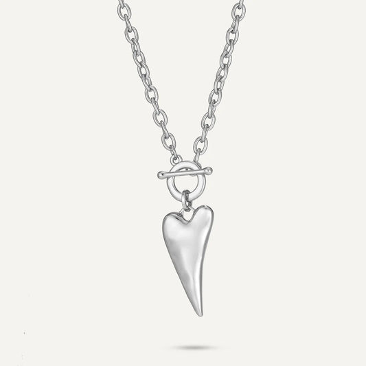 D&X Silver-Tone Plated T-Bar Heart Pendant Necklace