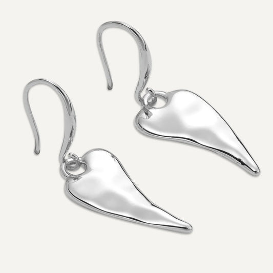 D&X Silver-Tone Plated Hammered Heart Drop Earrings