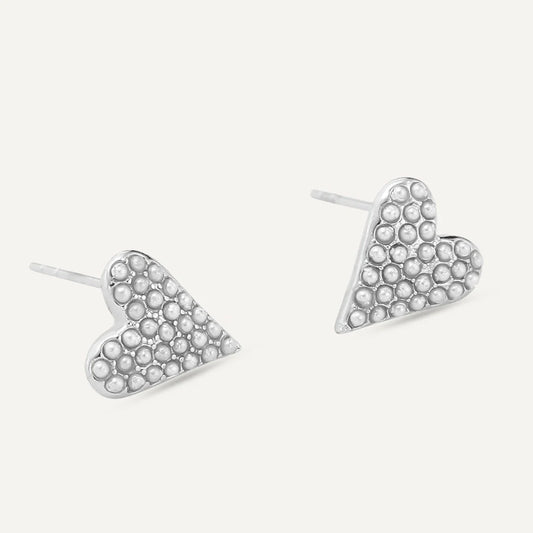 D&X Vibes White Gold Plated Stainless Steel Pearl Heart Stuf Earrings