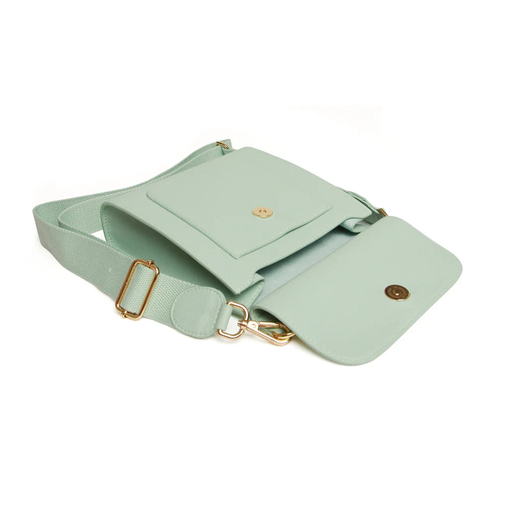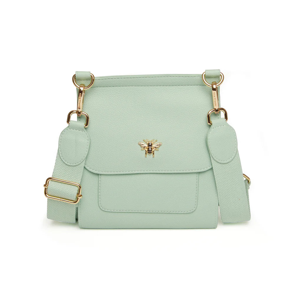 Made from premium vegan leather, it’s got a roomy compartment with a magnetic clasp to keep your things safe. The front flap adds an extra layer of security, and the detachable, adjustable strap with gold-toned clips lets you swap it out for a different Alice Wheeler strap if you want to switch things up. Perfect for any occasion!