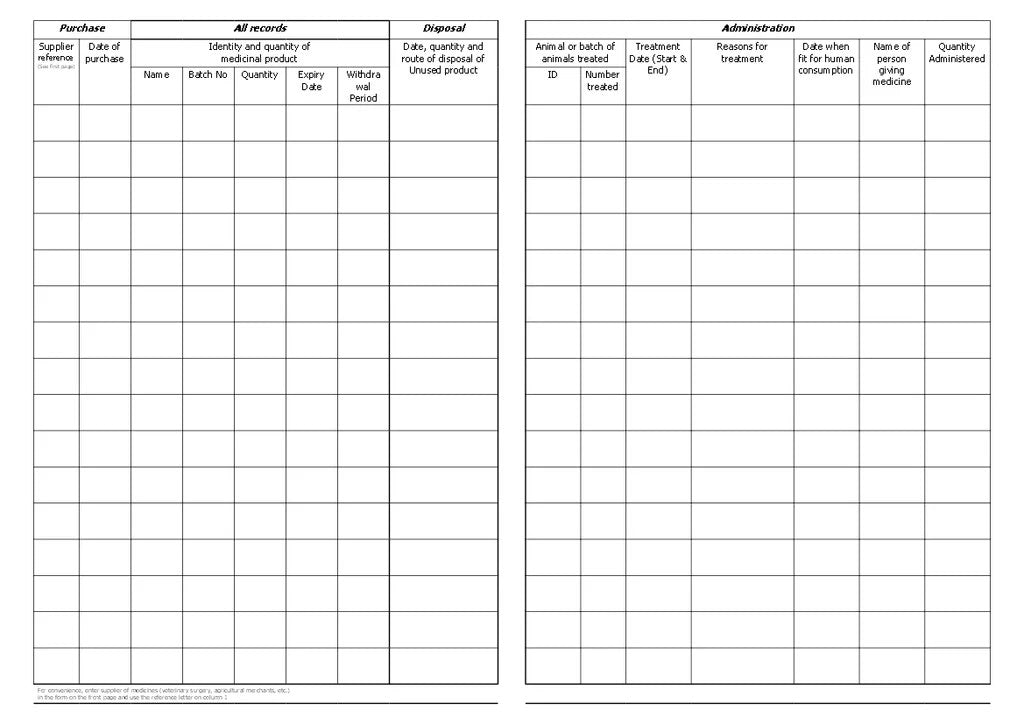 An Animal / Livestock Medicine Combined Record Book is designed to record farm medicines' purchase, administration and disposal. Over 450 Records Per Book. Suitable for keepers of sheep, cattle, pigs, goats, poultry and all farm livestock.