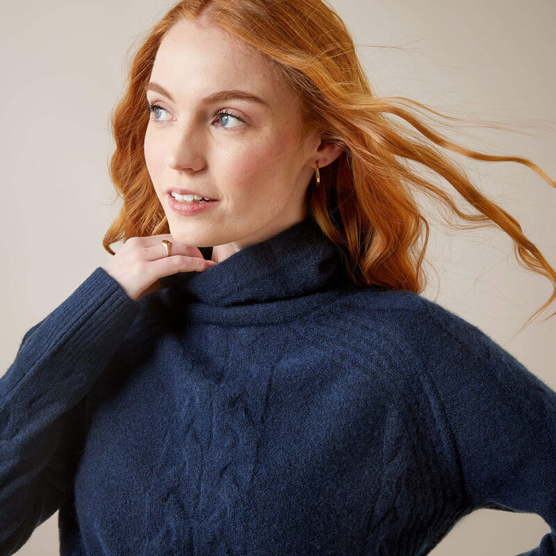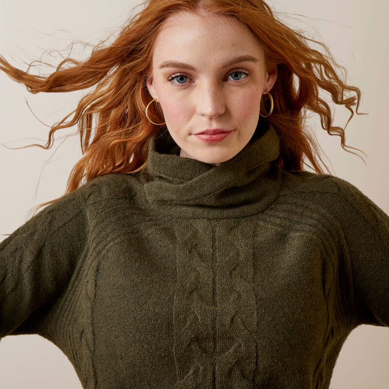 Offering an ultra-soft wool blend and a luxurious wrap high neckline, this designer pullover ensures optimum comfort and durability. Rib-knit and cable technologies deliver lasting warmth and top-of-the-line craftsmanship for the modern outdoor enthusiast.