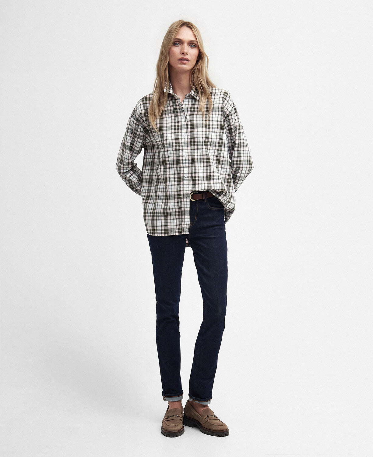 The oversized fit allows for comfortable movement while the olive and pink check pattern adds a touch of style. Complete with turn back cuffs and the iconic Barbour Id bar at the back neck. Elevate your wardrobe and stay cool all day long.