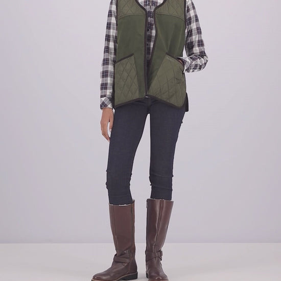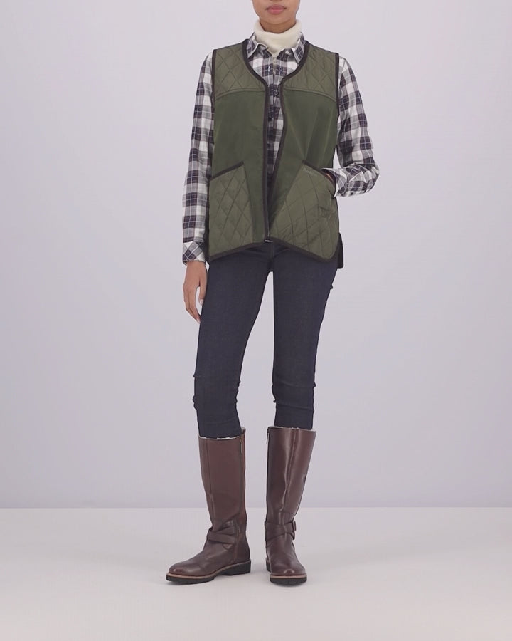 This two-inch diamond quilted gilet features Liddesdale-inspired pockets with cord trim, adding a touch of elegance and functionality. Perfect for cooler days, this gilet will keep you warm and fashionable.