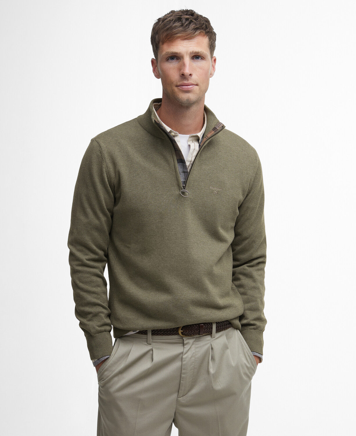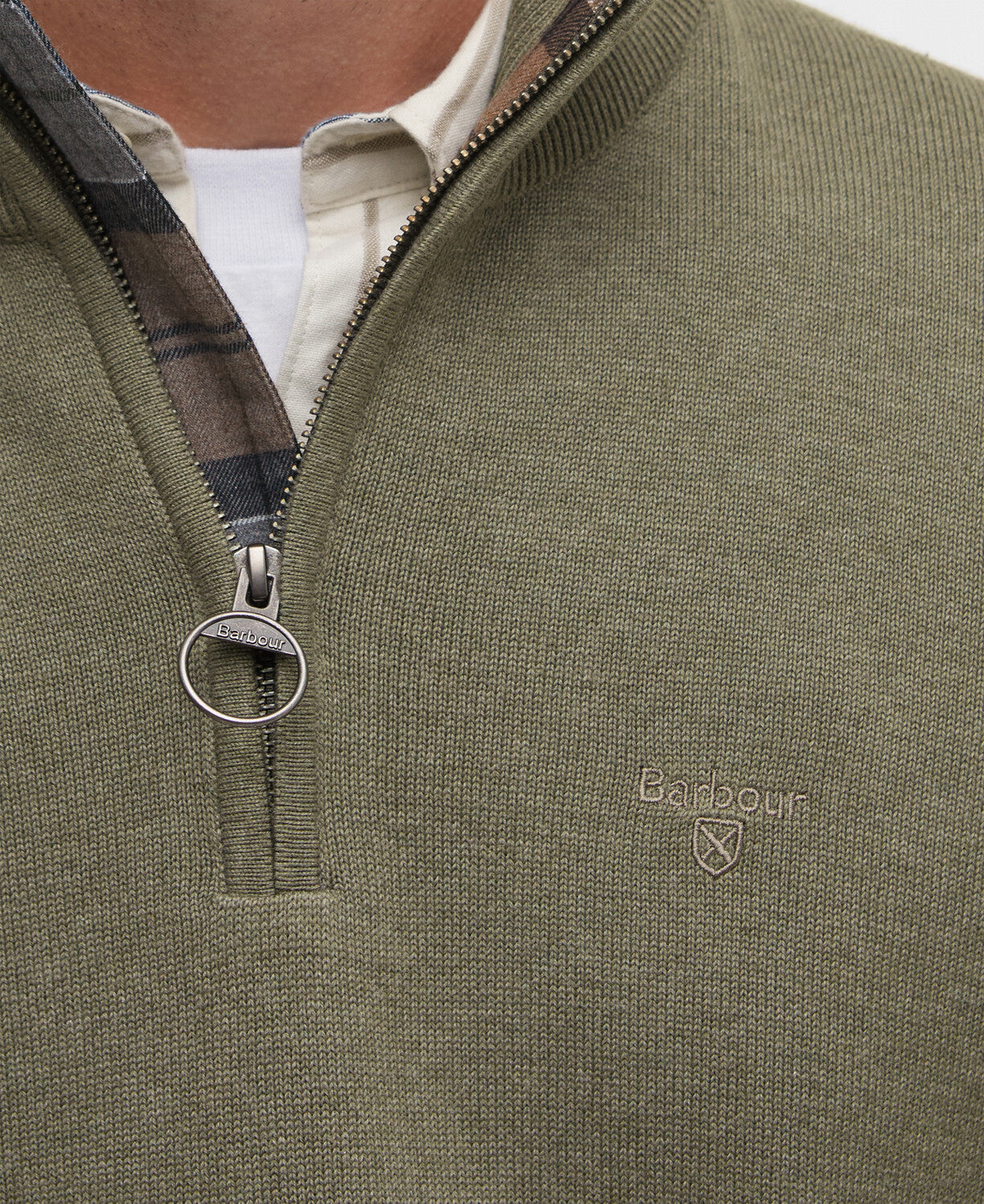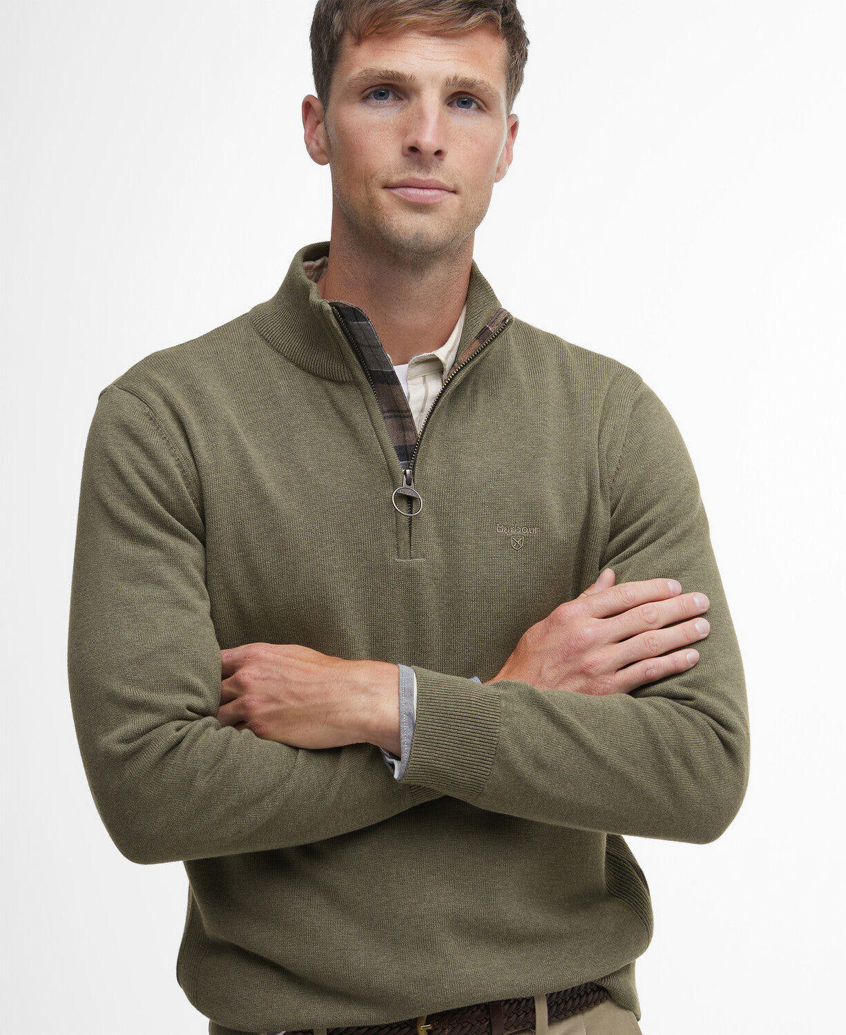 The Barbour Cotton Half Zip Sweater is a versatile layer trimmed with Classic Tartan at the inner placket.