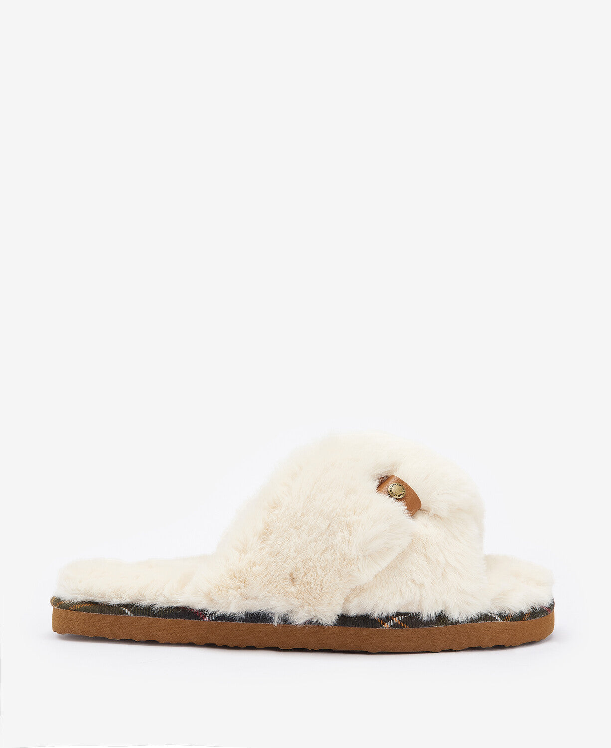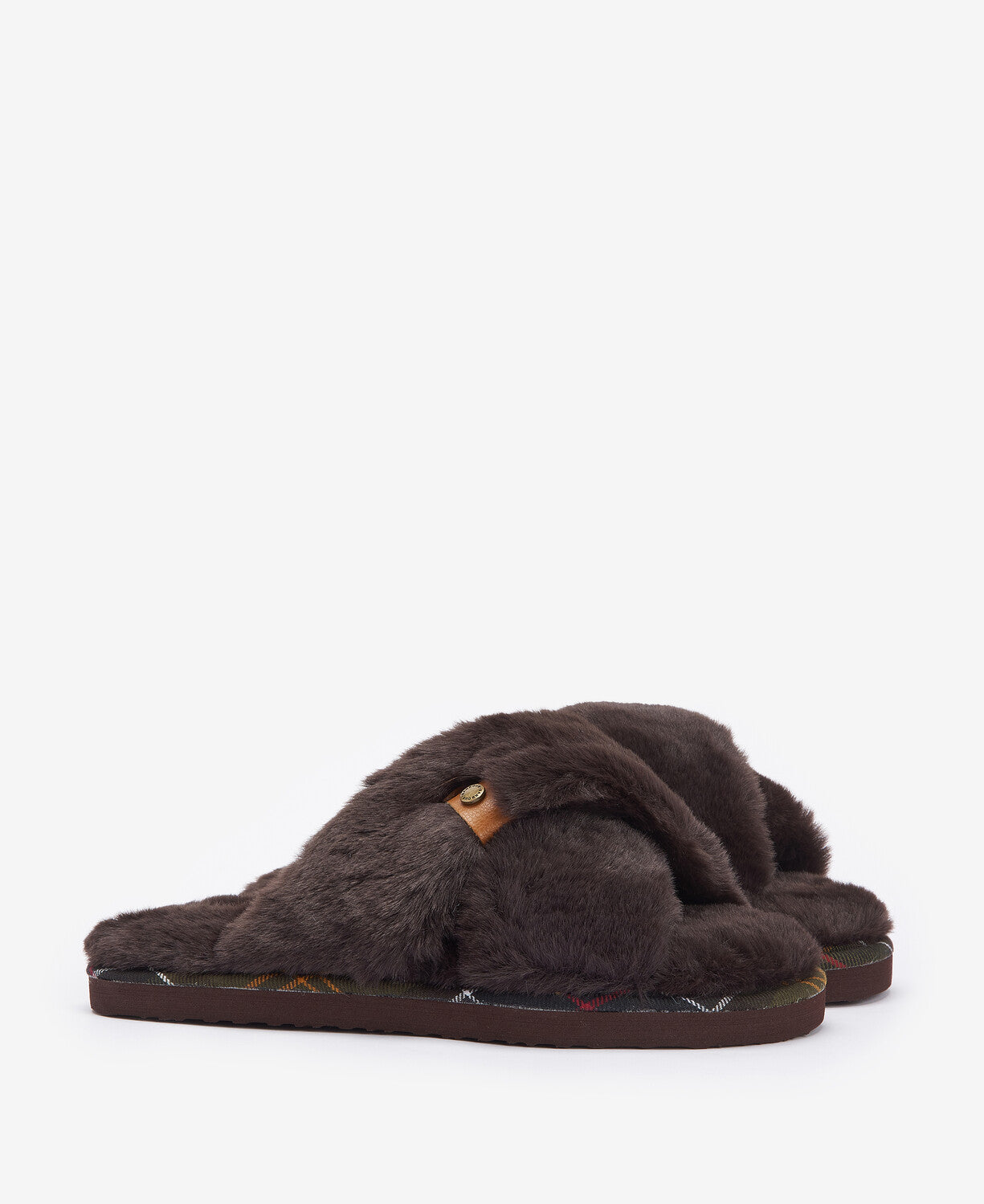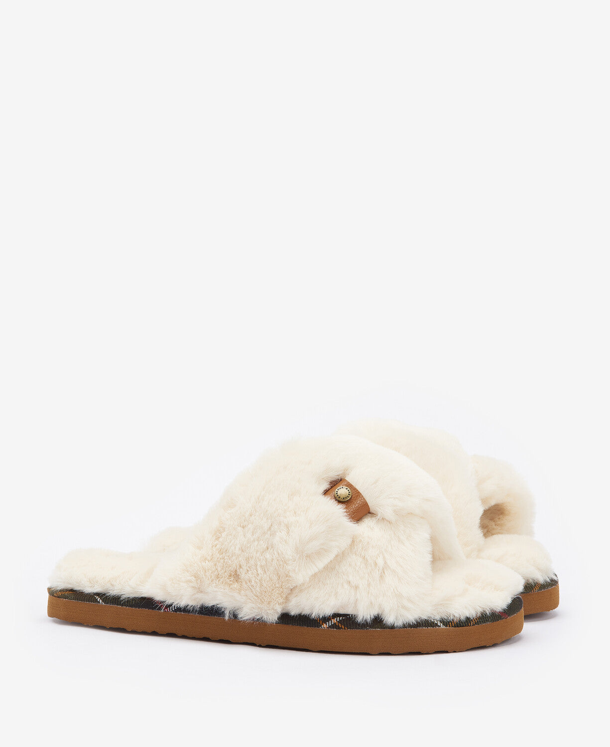 The Barbour Eliza Cross-Over Slippers provide ultimate comfort with an all-over faux-fur design.