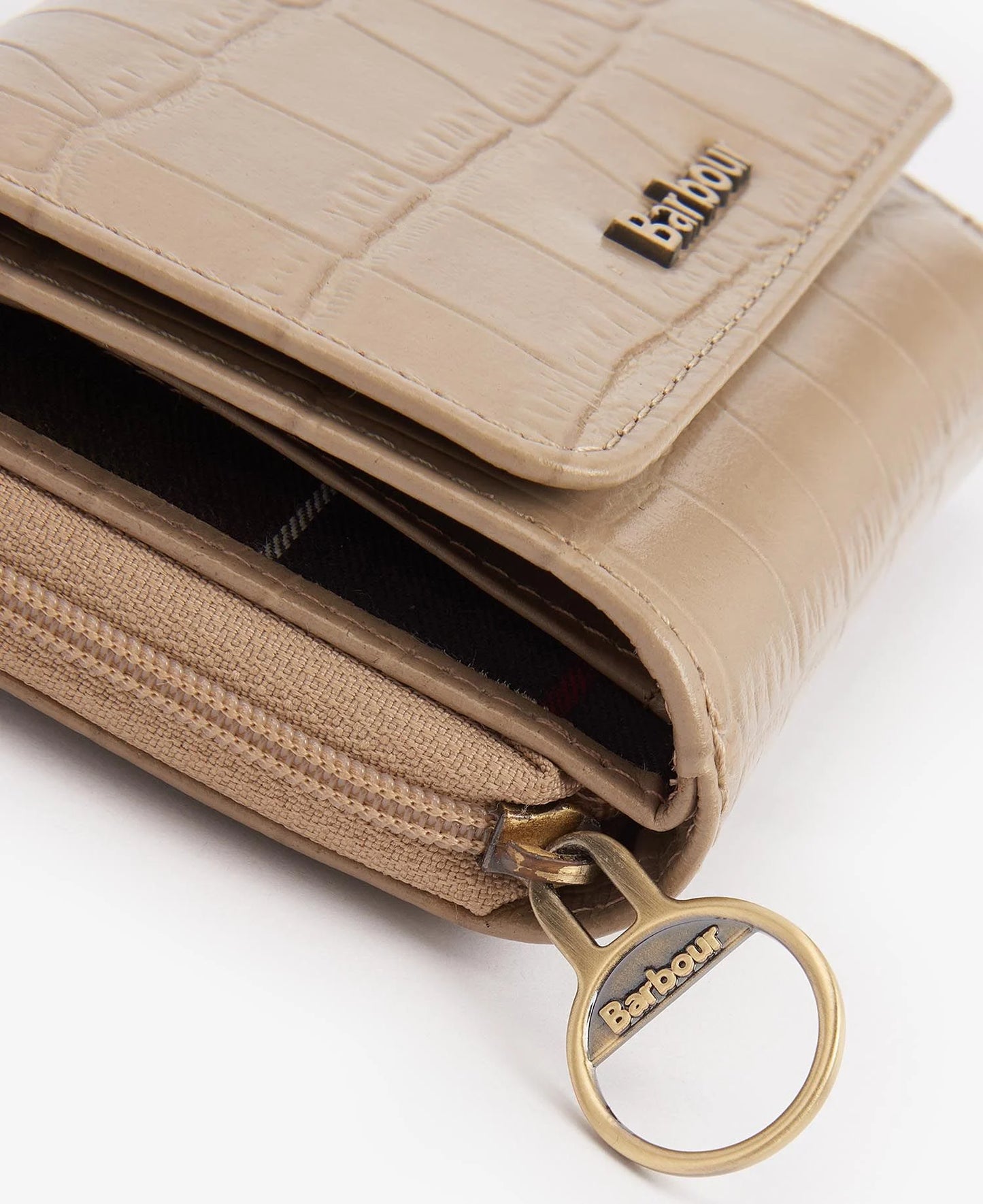 The Barbour Faux Croc French Purse is the epitome of elegance and practicality.