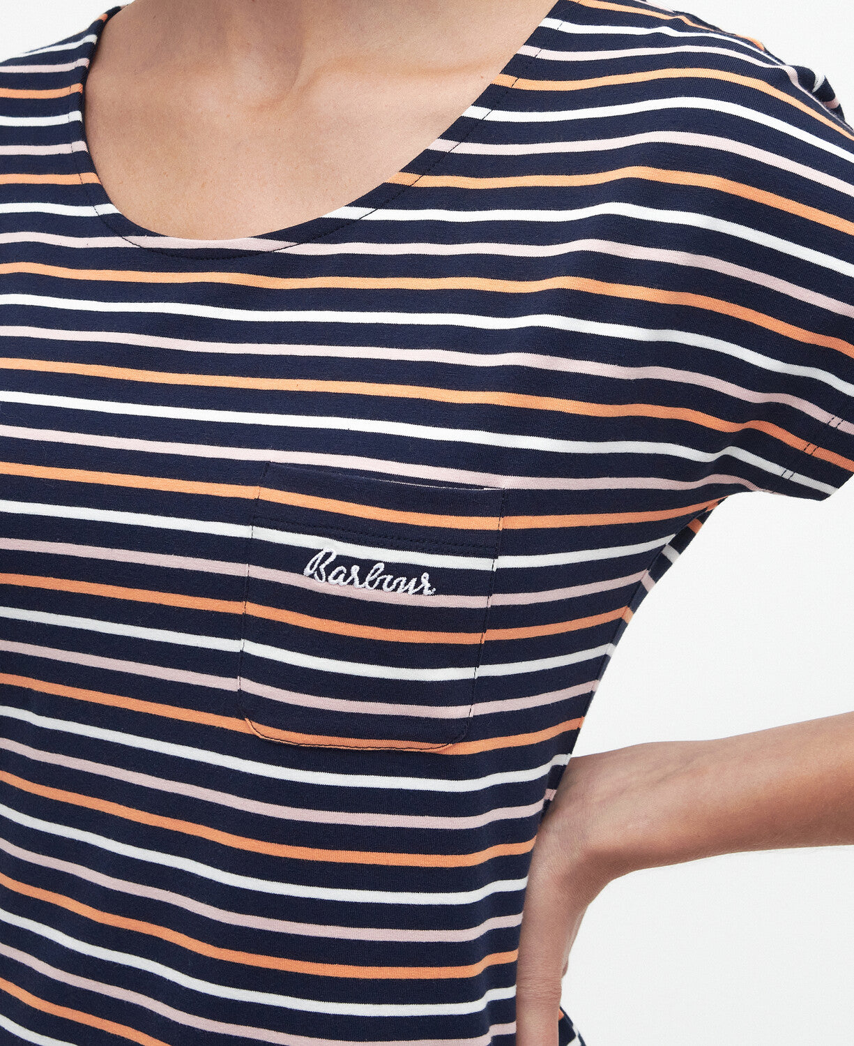 Featuring new stripes and Barbour script embroidery, this classic dress elevates your style. The slim metal ID bar at the back adds a touch of sophistication. Perfect for any occasion, it exudes a professional and polished look.