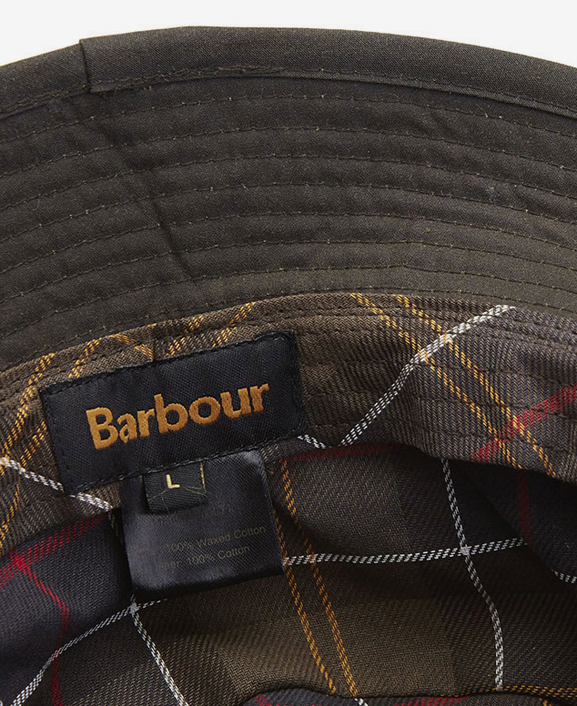Barbour Wax Sports Hat is made with classic Barbour wax cotton outer and a cotton tartan lining.
