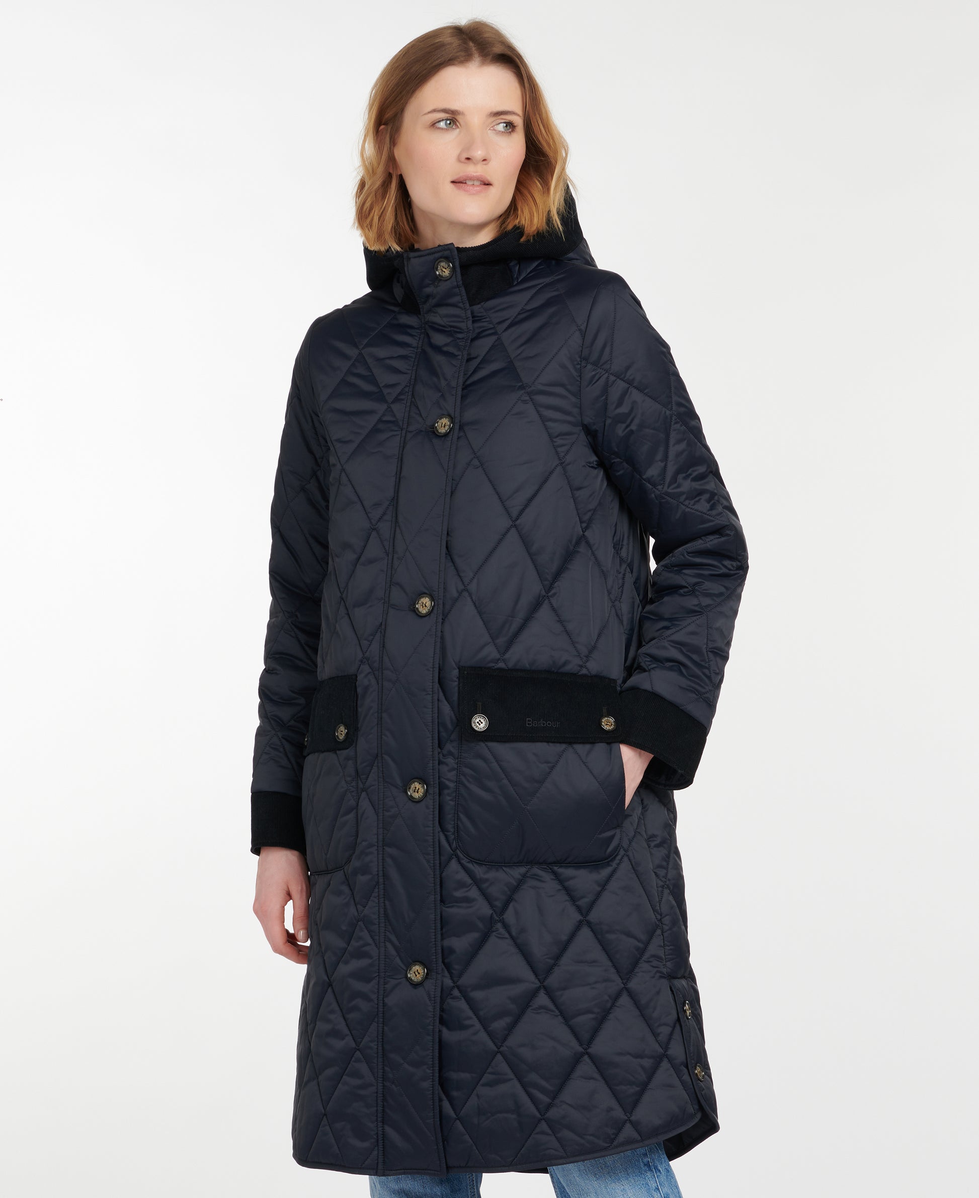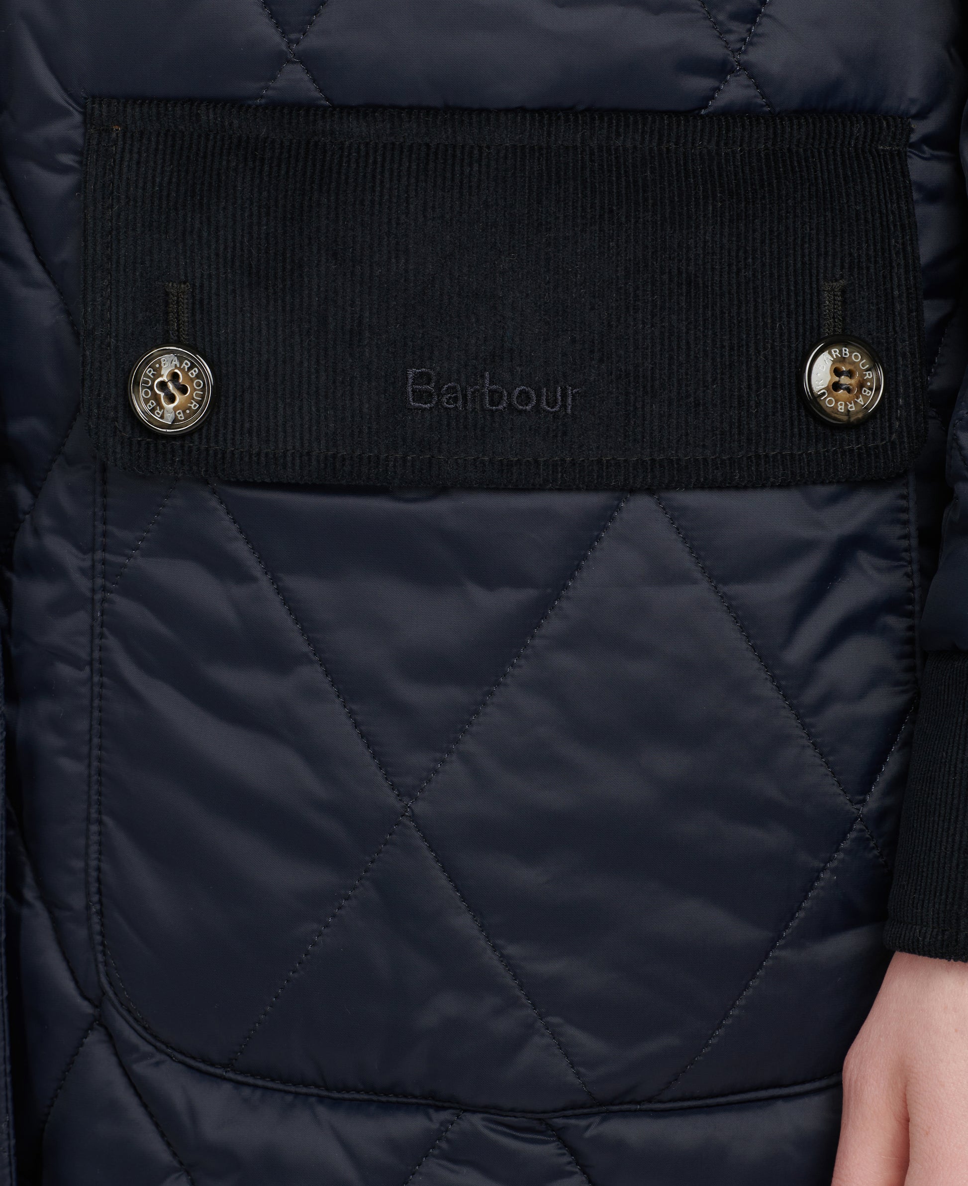 Barbour Mickley Quilted Coat is also trimmed in cord on the exterior whereas the interior is layered with a tartan lining for a traditional Barbour feel. Barbour Mickley Quilted Jacket is finished with a buttoned curved vent at the side hem.