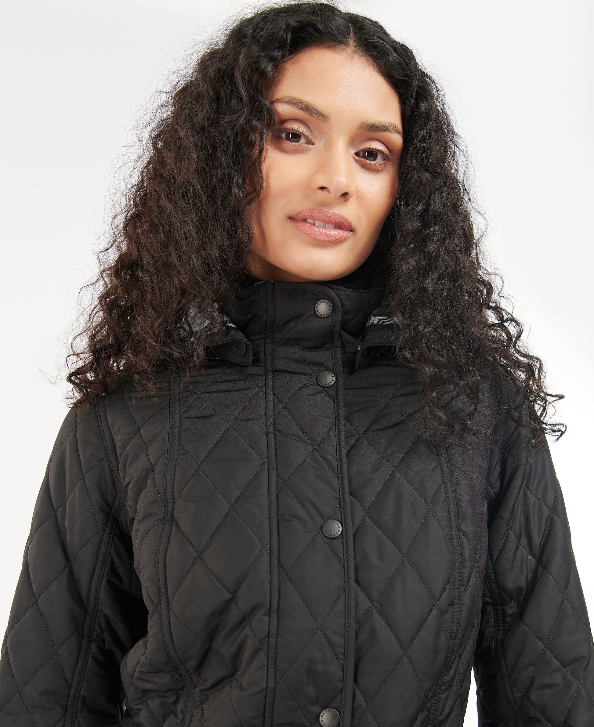 Diamond quilted style with detachable hood.