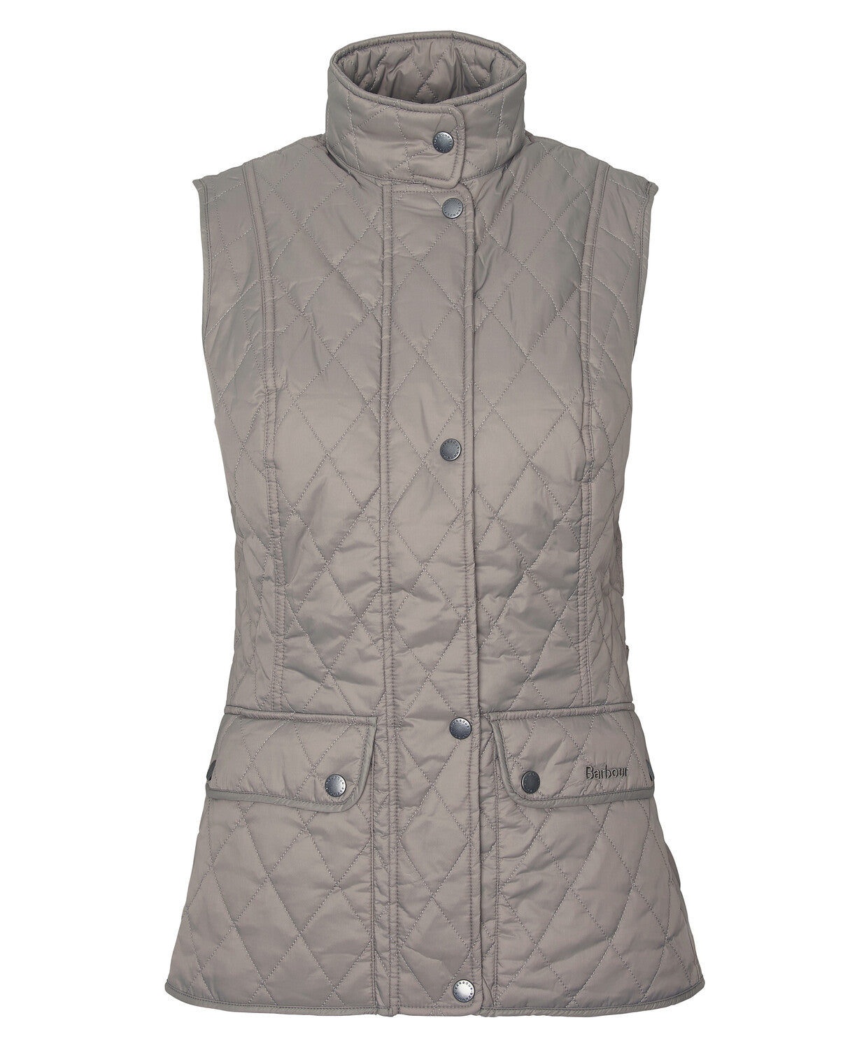 Styled with a zip fastening to a stand collar with a stud-over storm flap to keep the wind at bay, it features two deep side pockets to keep any essential items within easy reach. Detailed with a curved side hem and adjuster tabs for a flattering silhouette, the gilet is finished with discreet tonal Barbour embroidery to the left pocket flap as worn.
