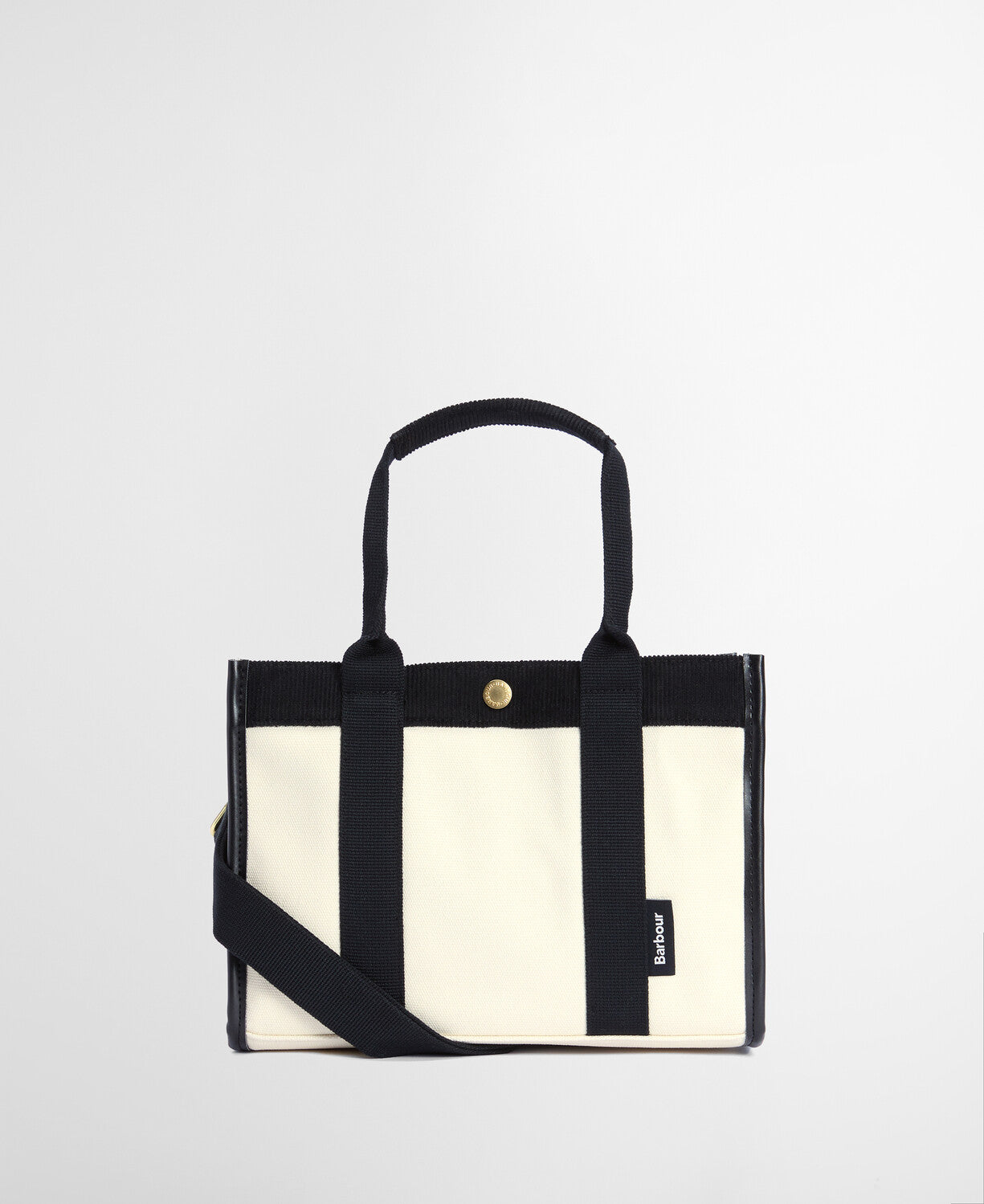 Constructed from durable natural cotton canvas, this versatile piece features contrast trim and sturdy webbing grab handles for reliable everyday carry. The brass stud closure adds refined detailing, whilst the detachable shoulder strap adapts seamlessly between tote and crossbody styling. An inner zipped pocket keeps essentials secure, and the branded woven flag label signals authentic heritage quality. Whether navigating daily errands or weekend outings, this compact bag delivers understated elegance with practical design.