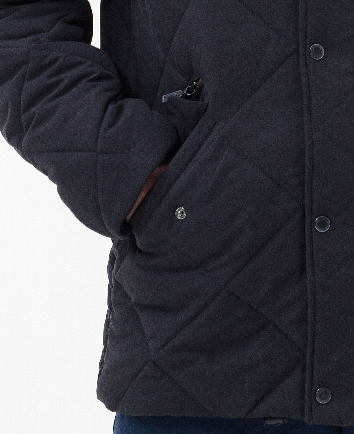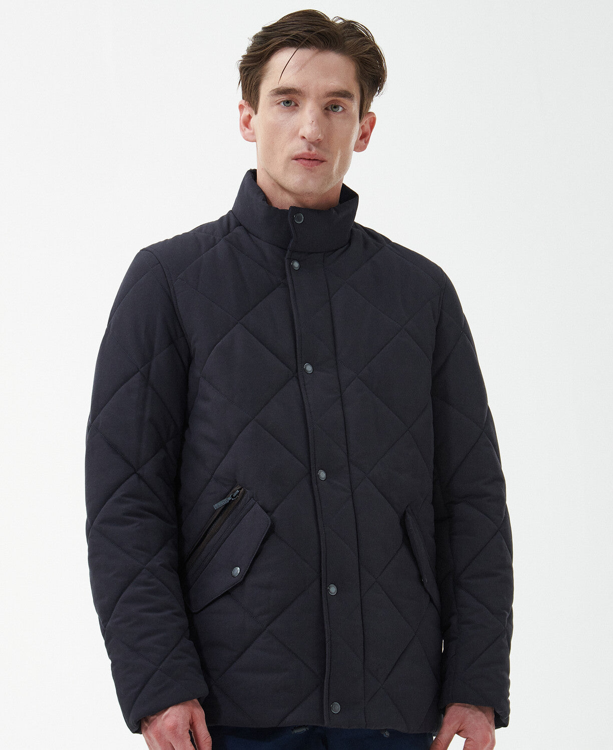 Featuring a stand collar and two types of fastenings for superior warmth, this quilted jacket provides maximum protection from the cold. For added protection, it features two flap-down pockets and a jetted zip pocket to keep your valuables safe and secure.