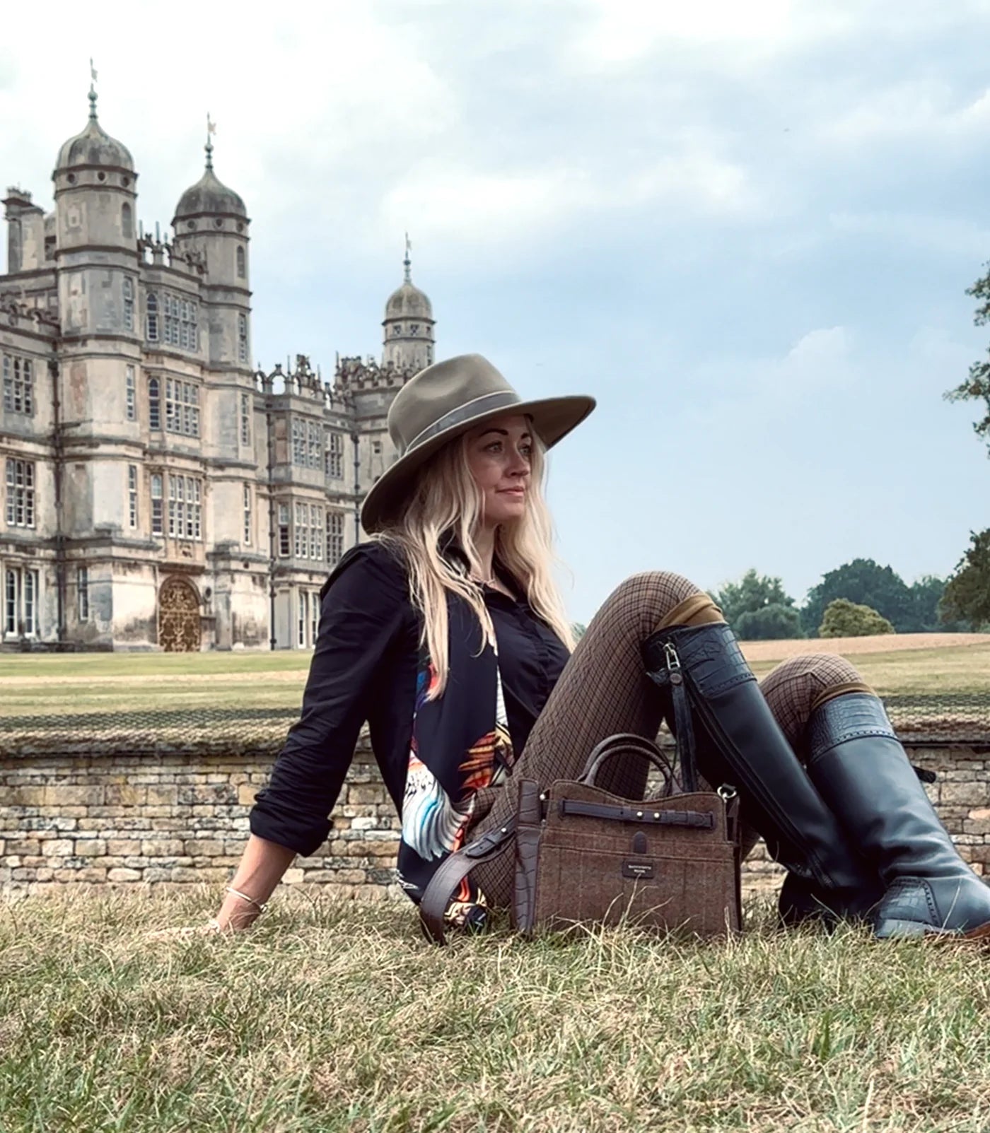 It can be carried by hand, across the body, on your shoulder, or in the crook of your arm. With ample space for a large purse, phone, keys, tissues, sunglasses, and a notepad, it provides both style and organization. A versatile and elegant choice for any occasion.