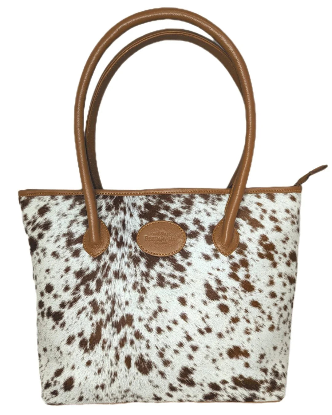 Bethany Rae Upton Cowhide Handbag - Caramel Assorted Print