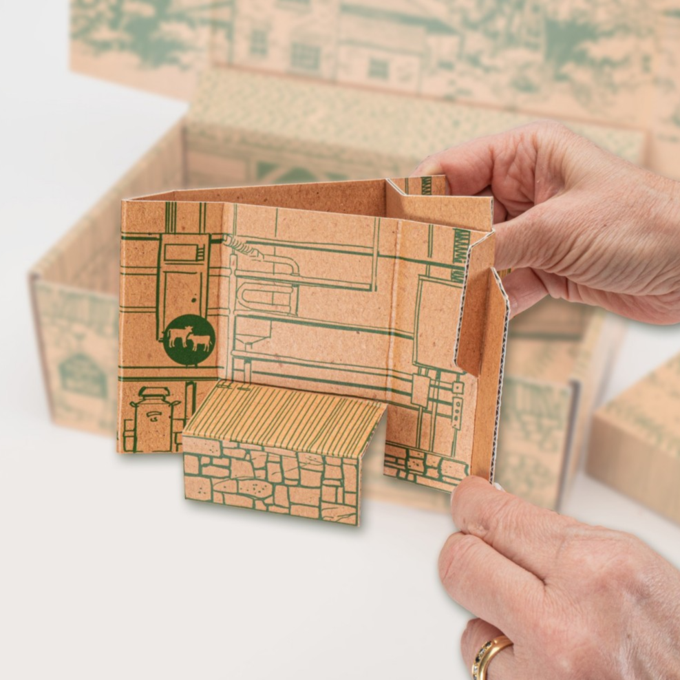 The outer sleeve can be used as a field for the cows to graze. And when you’ve finished playing, the sleeve explains how to fit all the parts back into the box.