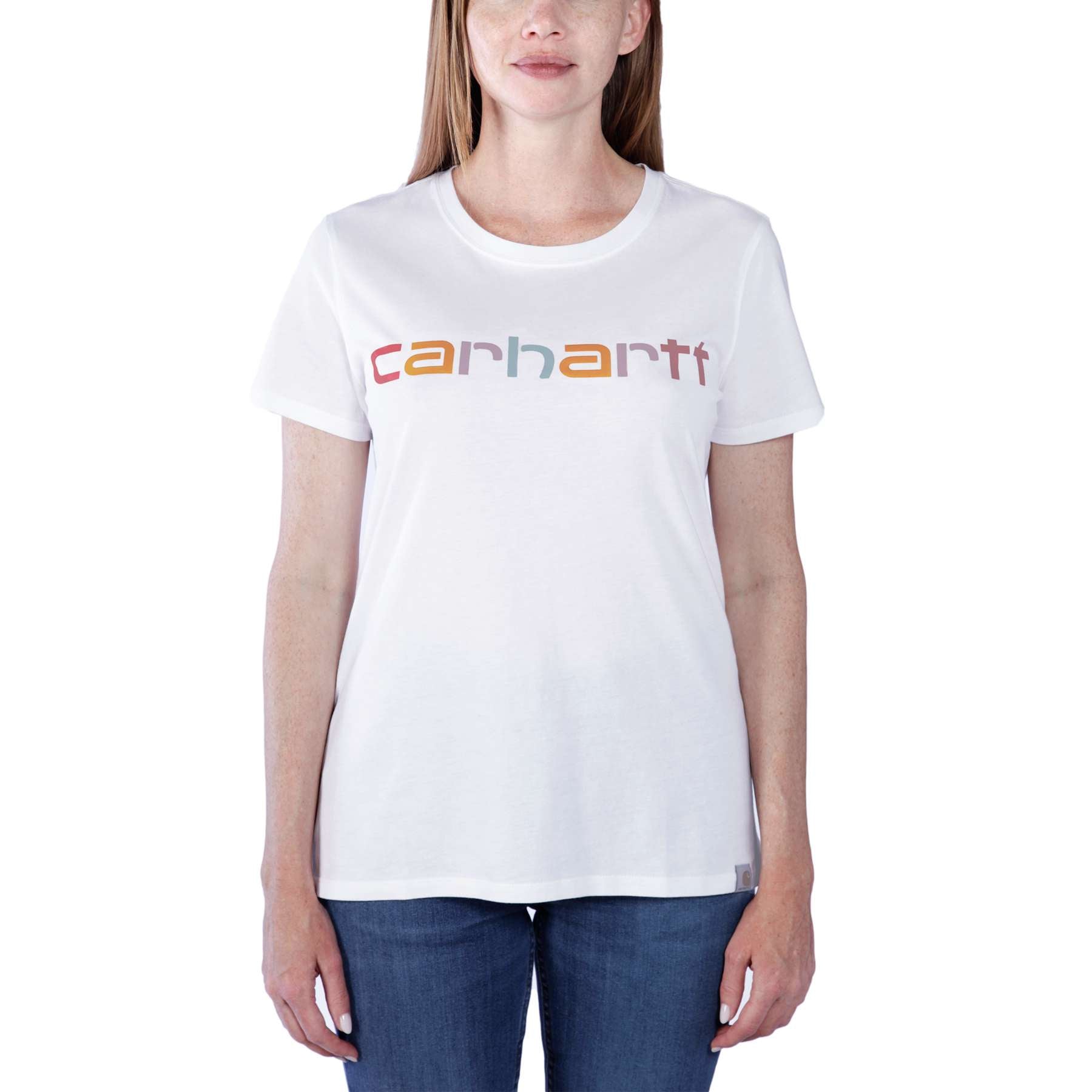 Featuring a vibrant multicolour logo, this women's shirt adds a pop of colour to any outfit. Its lightweight and durable design ensures all-day comfort, making it perfect for both work and play. Life truly is better in colour with this Carhartt t-shirt.