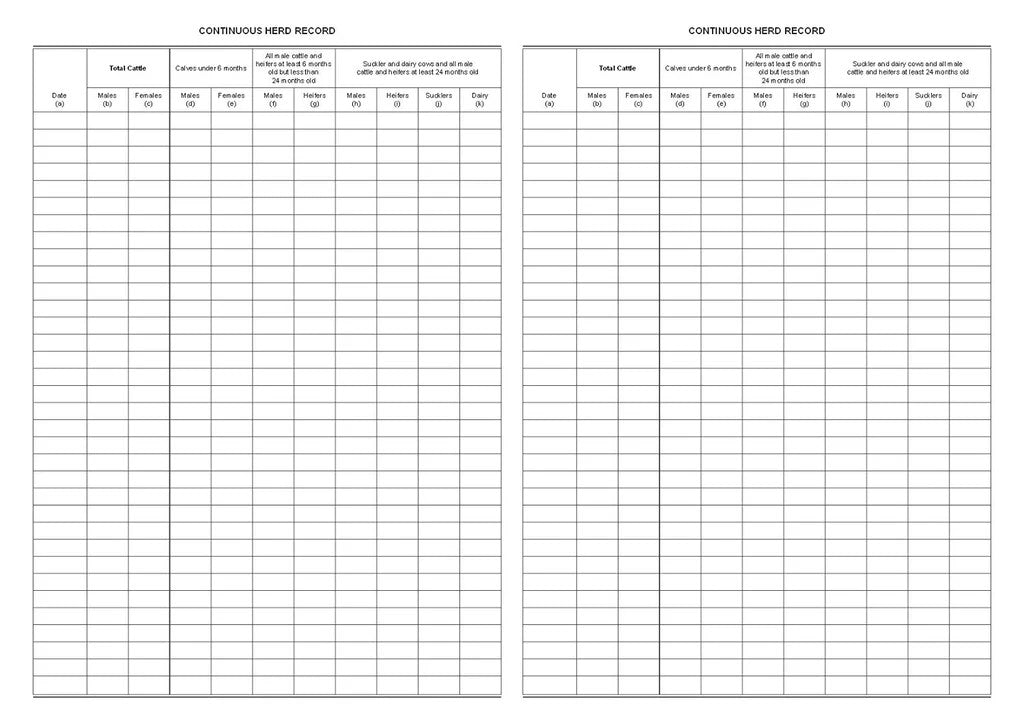 An on-farm record of animal movements designed specifically for use with cattle. Incorporates a cattle movement record and continuous herd record as required by DEFRA.