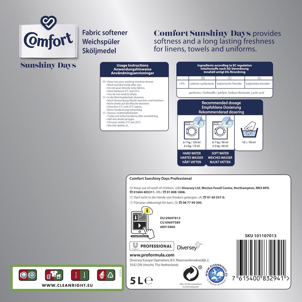 - Comfort dilute fabric conditioner - 66 washes per 5l.