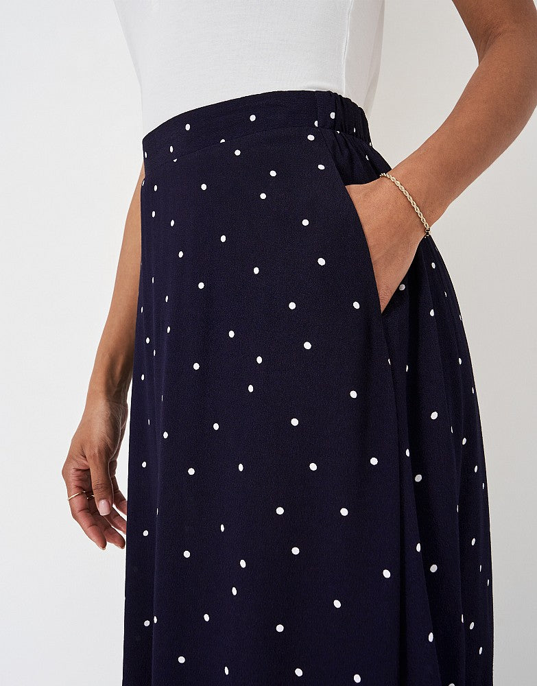 Introducing the must-have Amber skirt in navy and white polka dot.