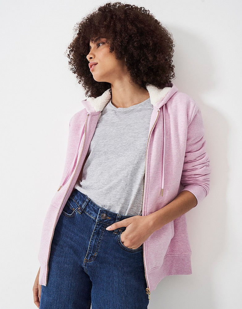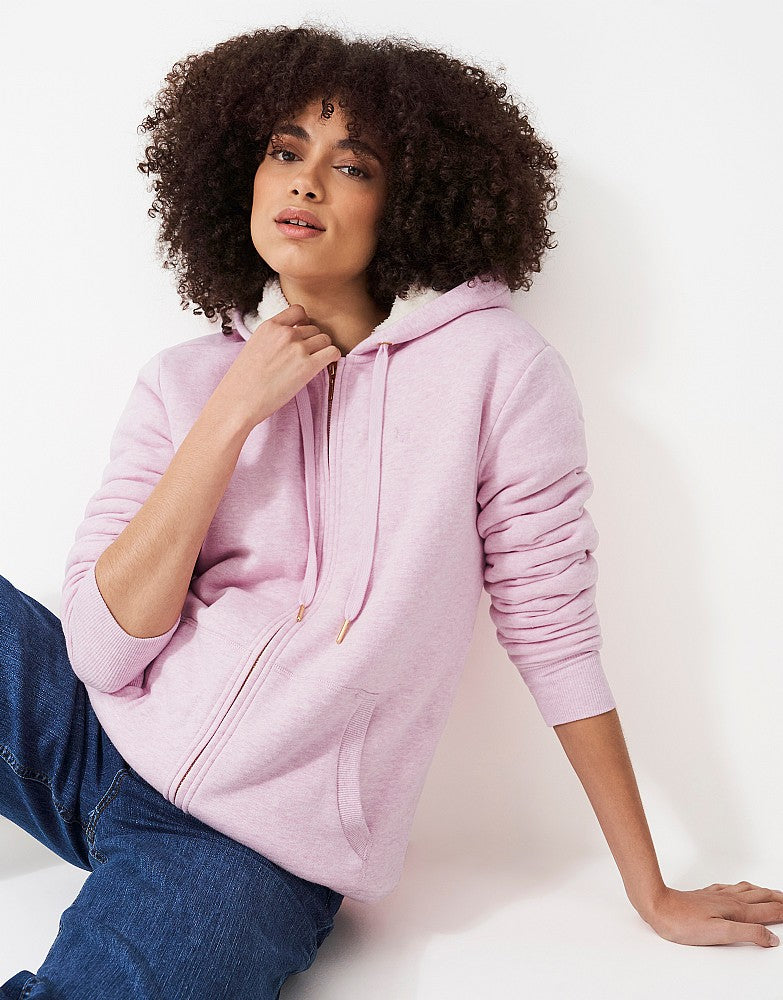 Stay warm and stylish in our pink marl Borg Lined Zip Through Hoodie.