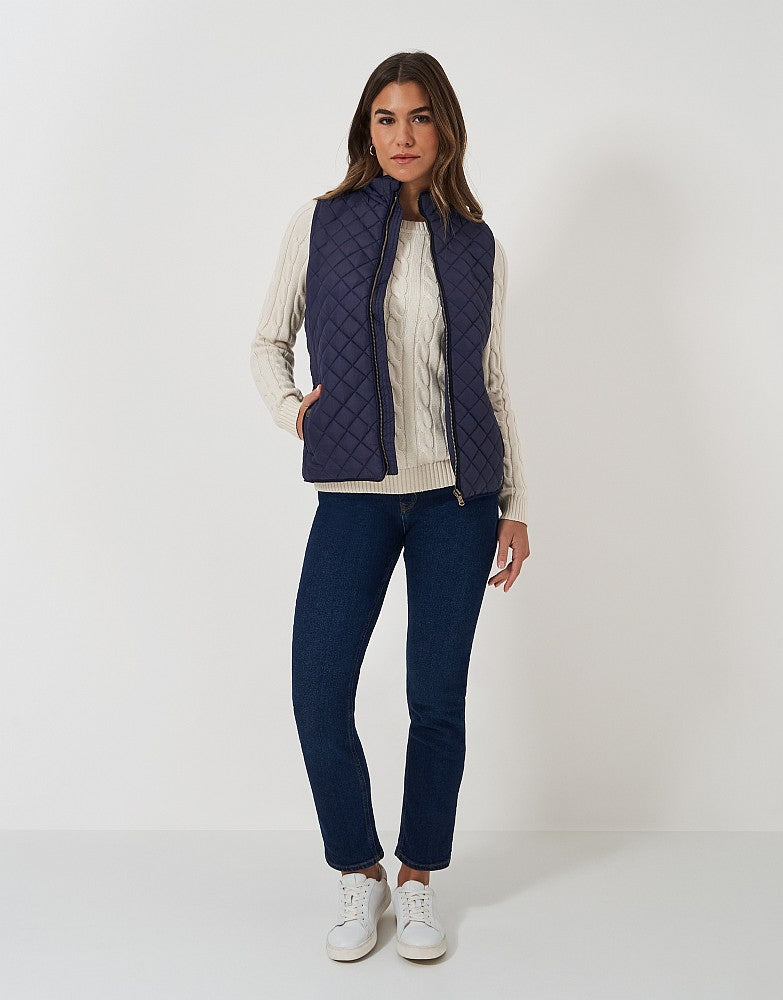 Take on changeable days in Crew Clothing's navy quilted gilet.