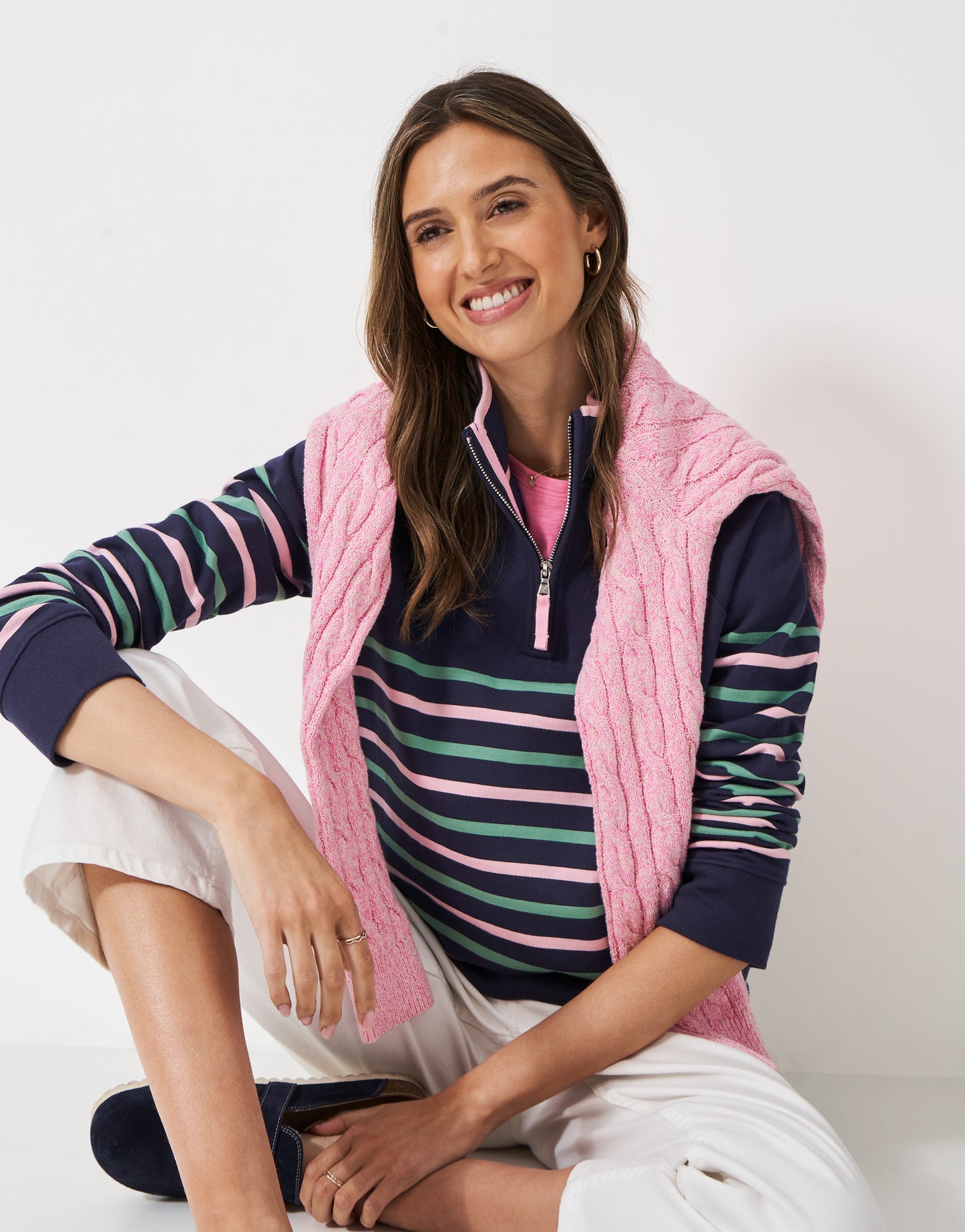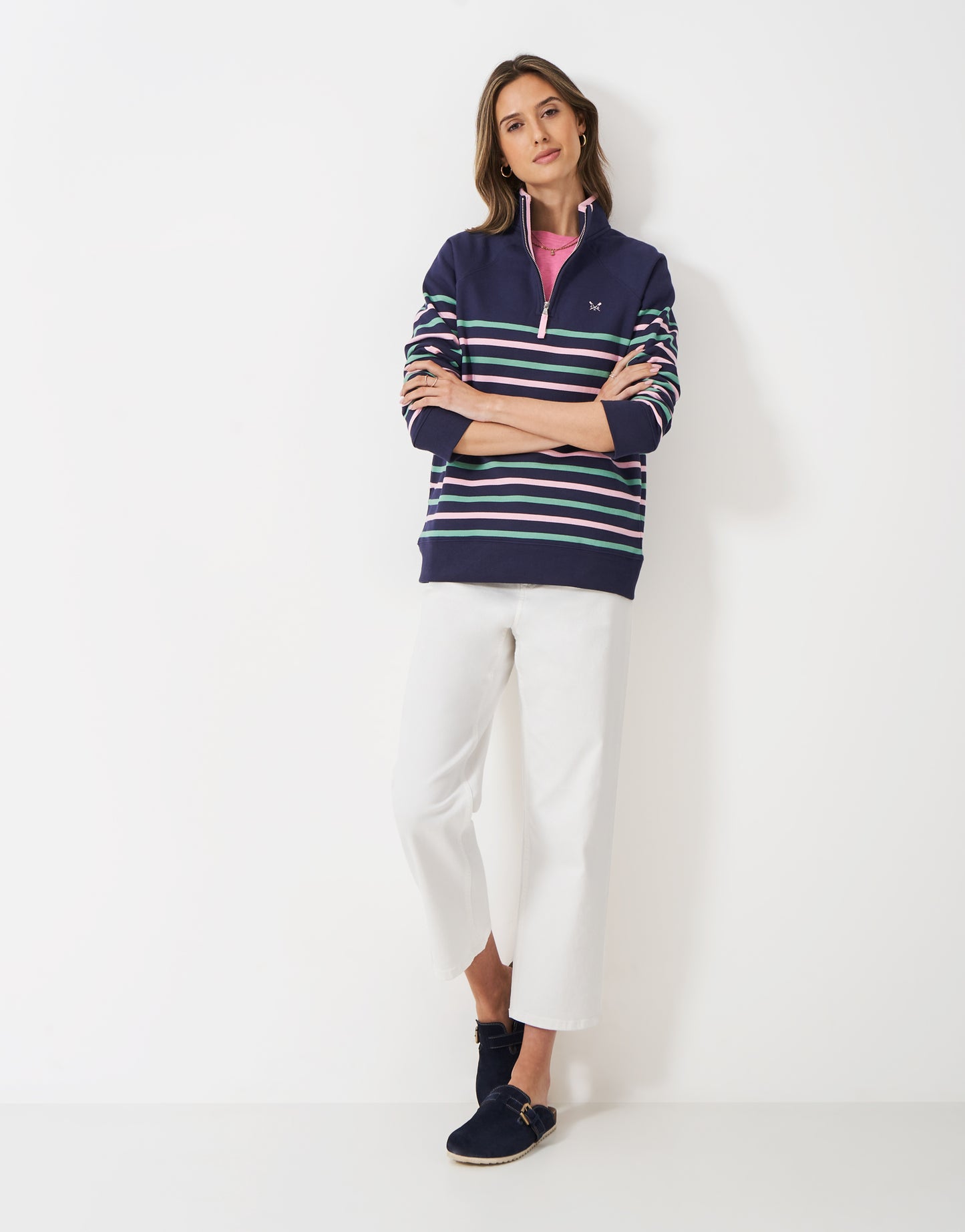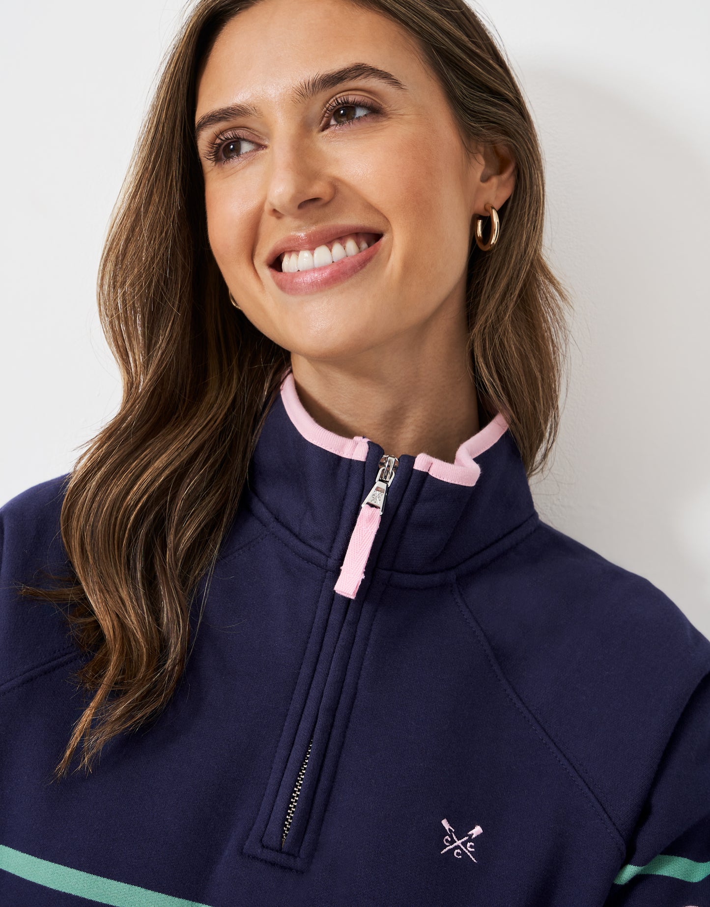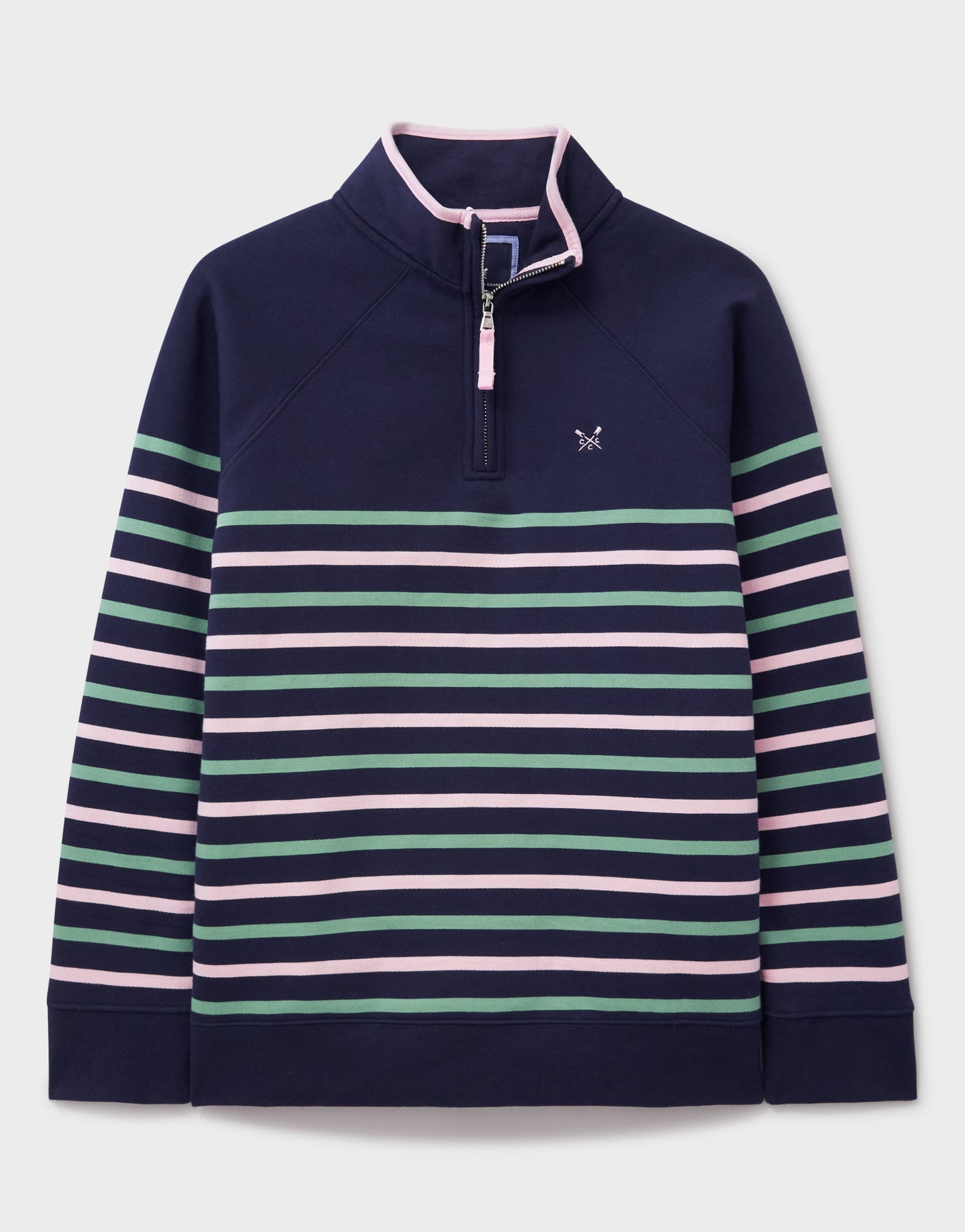 The Crew Clothing Half-Zip Sweatshirt blends style and functionality with its herringbone details, cosy funnel collar, and functional pockets.