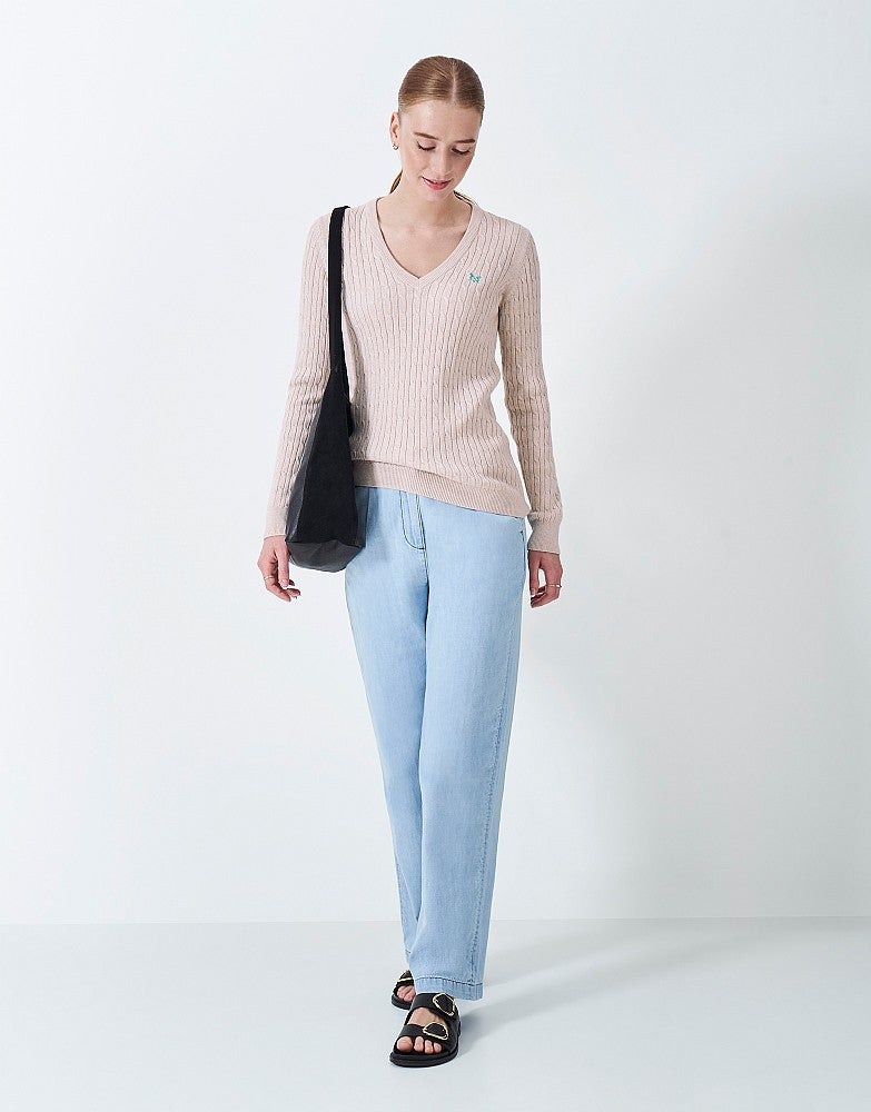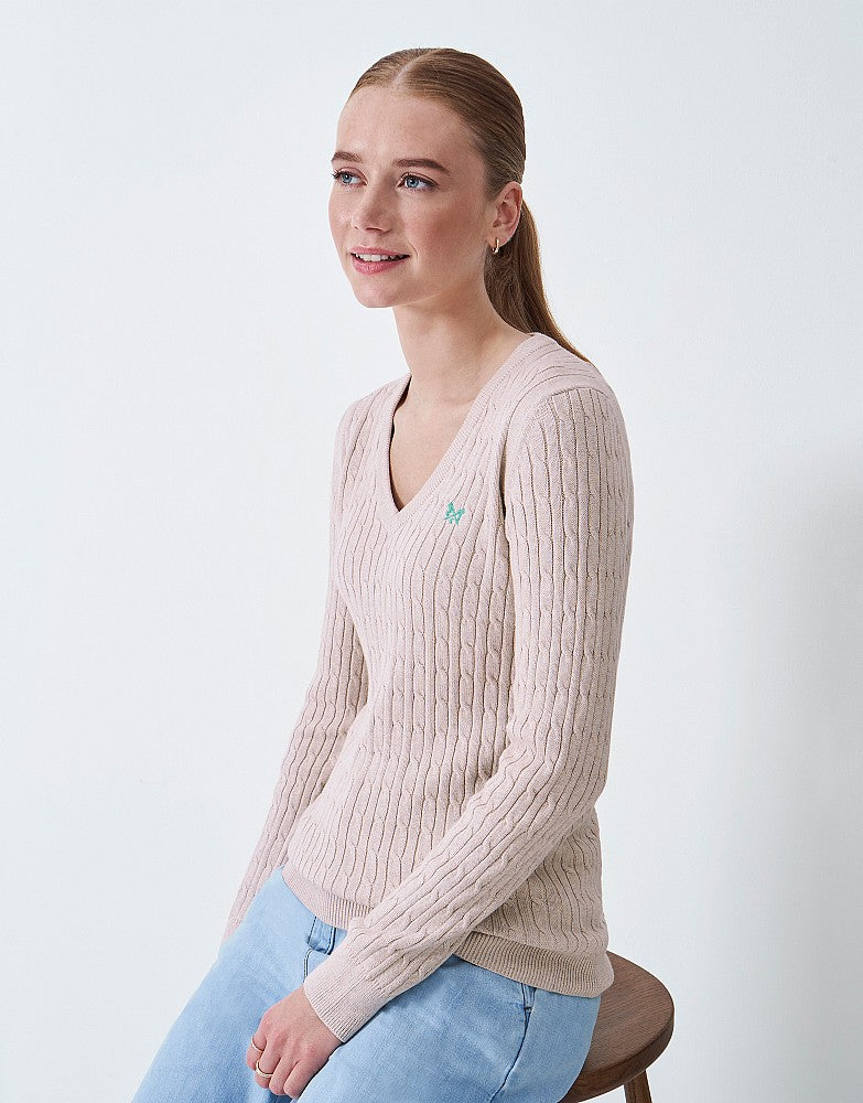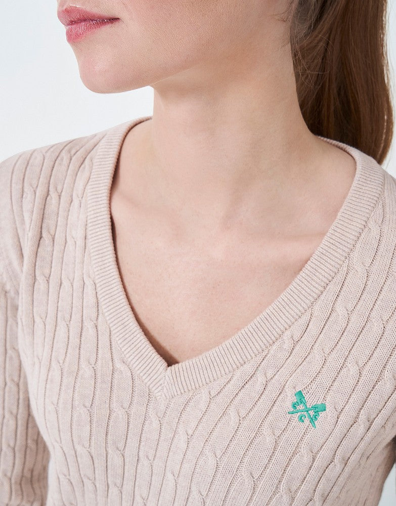 Experience timeless style and comfort with the Crew Clothing Heritage Cable V-Neck Jumper.