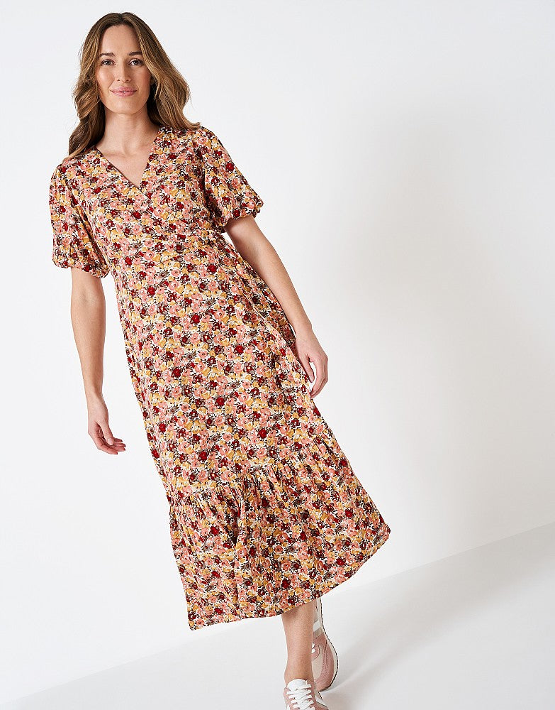 Crew Clothing Melanie Wrap Dress in a pretty design featuring short puff sleeves and a simple yet oh-so-flattering wrap shape. The tie waist cinches you in at the waist, lending itself to a floaty skirt. Great with heeled espadrilles and a cardigan.