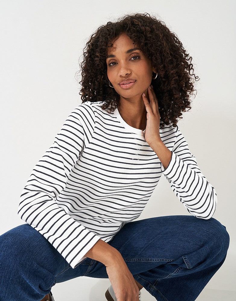 Crew Clothing Pique Cotton Blend Striped Sweatshirt