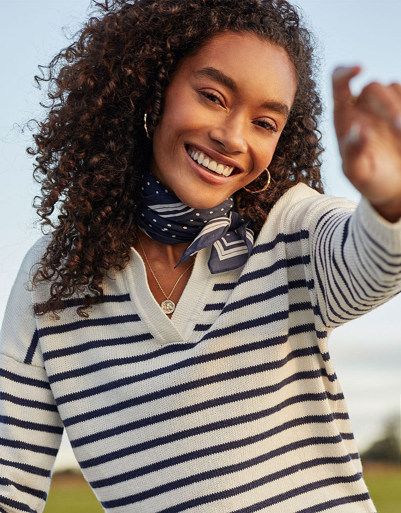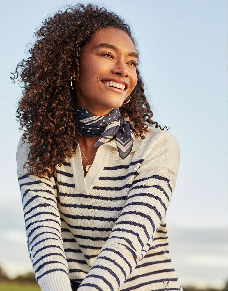 Crew Clothing Sandy jumper comes cream and navy stripes, perfect for days when you want comfort but still want to look stylish.