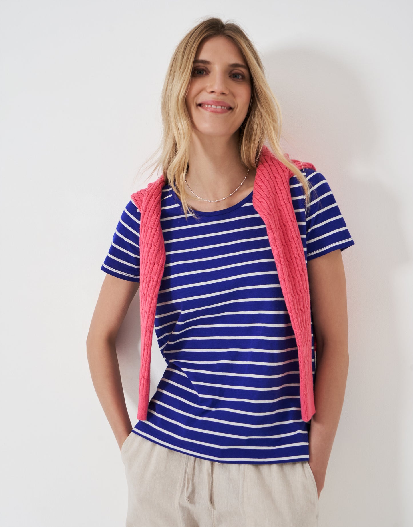 Crew Clothing Short Sleeve Scoop Slub Stipe T-Shirt