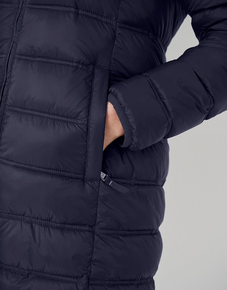 Featuring a detachable hood and pillowy padding, this dark navy coat is the perfect cool-weather layer. Made with our classic crossed oars print on the chest, it pairs well with sweatshirts and knitwear.