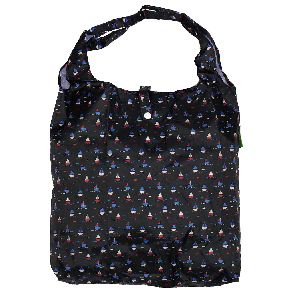 Eco Chic Lightweight Foldable Reusable Navy Yachts Shopping Bag