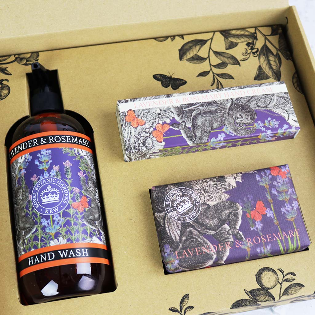 Show someone special you care with this luxurious, cruelty-free Kew Gardens Lavender & Rosemary Essential Hand Care Gift Box.