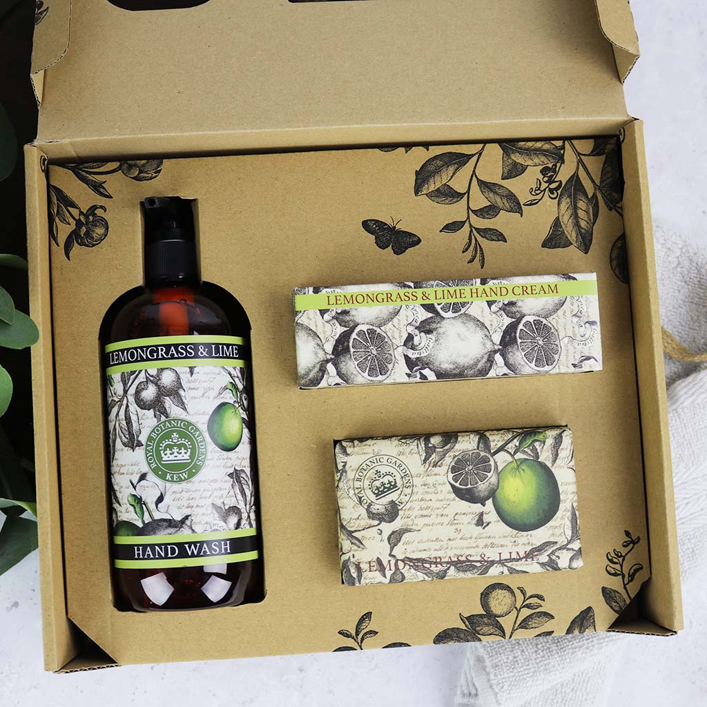Show your appreciation for a special someone with the English Soap Company's Kew Gardens Lemongrass & Lime Essential Hand Care Gift Box.